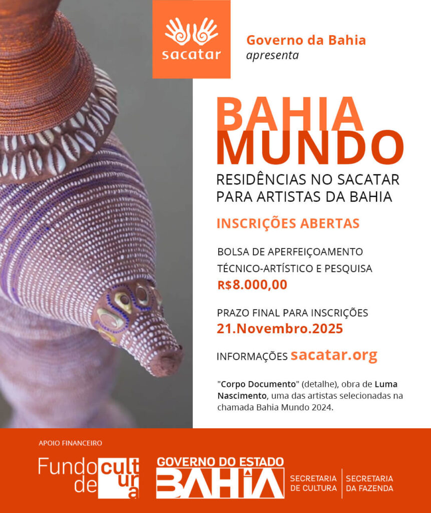 INSCRIÇÕES ENCERRADAS! Chamada Aberta para Artistas e Pessoas Criativas Residentes da Bahia se Candidatarem para Residências Artísticas no Instituto Sacatar,