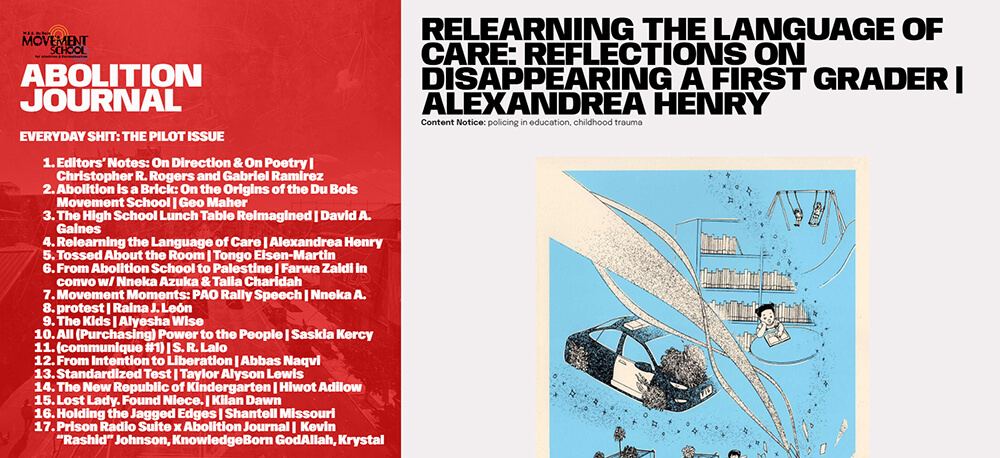 Sophie is a Ph.D. candidate at Stanford University’s Graduate School of Education, where she researches systemic violence and state dispossession and their impacts on communities of color. She has facilitated therapeutic collective spaces in schools and jails, where writing and artmaking serve as portals to imagining otherwise.