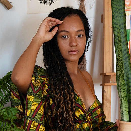 Ester de Oxum is a multidisciplinary artist from Itamaraju, Bahia. Her work combines painting, performance, writing, and ritual. It connects art and ancestry, with an emphasis on Afro-diasporic knowledge and what the artists refers to as “technologies of the sacred”.